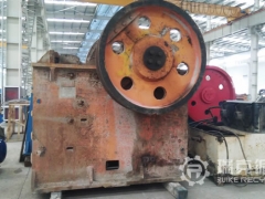 该台PE750x1060颚式破碎机在河北某地从事青石的破碎工作,在使用过程中性能非常的良好,除了更换易损件以外没有出现过其它的故障,2018年9月被我公司收购,设备到厂以后公司技术人员对该台设备进行检测,外观除了有锈迹以外没有其它的损伤,随后将该台设备拆机检查,发现机架完好、动颚完好、偏心轴完好、皮带轮、飞轮均无损伤,衬板有损坏的地方,根据实际检查的情况,做出了维修方案:更换损坏的衬板,对轴承座、动颚主轴等进行保养,把该台设备的锈迹清除干净并做防锈处理。维修完成之后把设备进行组装,试机合格后准备喷漆销售。