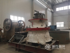 该台GP11圆锥破碎机是我公司销售人员在河北某地回收的,设备从出厂就一直从事鹅卵石的破碎工作,使用中性能非常的良好,由于该砂石生产企业和当地一个大型项目合作期满,将设备转让给我公司。我们从照片上可以看出除了外观有锈迹以外,架体保存的还比较完成公司技术人员对该台设备进行拆机检查,发现动锥、传动轴、铜套等保存的比较好,衬板等易损件有磨损的重新进行更换,然后对其它零部件进行保养。完成检修之后重新安装,并且在我公司试机平台上进行了数个小时的试机,试机中性能非常的稳定,没有出现不良现象。